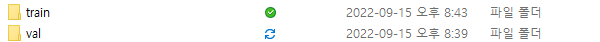 최종적으로 yolov7/data 폴더 내부에는 val, train 폴더가 존재해야한다.