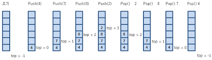 top:스택에서 가장 최근에 입력되었던 자료를 가리키는 변수, 스택이 비어 있으면 -1의 값을 갖는다.