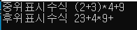 - 오른쪽 괄호를 만나게 되면 왼쪽 괄호가 삭제될 때까지 왼쪽 괄호 위에 쌓여있는 모든 연산자들을 출력한다.